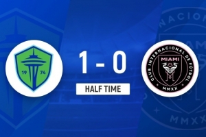 伤停补时1分钟。上半场比赛结束,迈阿密国际0-1西雅图海湾人。
