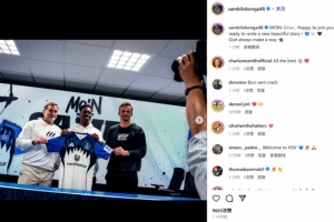 洛孔加晒出自己的新援发布会上手持汉堡球衣的亮相照,并配文:“你好@汉堡。很高兴加入你们,我已经准备好谱写一段新的美好故事!💙🤍🖤上帝总会指引出路的。”