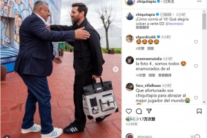 梅西回到阿根廷国家队报到,塔皮亚社媒晒出迎接梅西的照片,配文:“10号笑得多灿烂!很高兴再次见到你。”