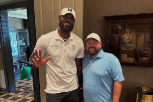 体育资讯9月2日讯 近日,美国职业高尔夫球手Colt Knost更新Instagram,晒出一张他和詹姆斯在打高尔夫时的合影。