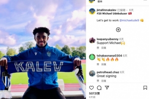 体育资讯9月3日讯 爱沙尼亚球队卡勒威近日官方宣布,中国香港籍前锋米高加盟球队。