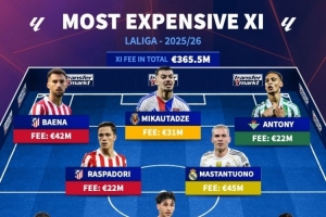 西甲今夏最贵引援阵容(转会费)