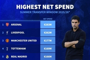 体育资讯9月4日讯 德国转会市场统计了今夏各队转会净支出,并列出榜单,阿森纳2.83亿欧居首。