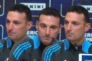 一名记者在听完主帅对梅西的感言后情难自已、当场落泪,而这一幕也深深触动了斯卡洛尼,导致他自己也一度眼眶湿润。
