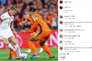 莱万晒出自己在比赛中和荷兰队长范迪克的对位照,并配文:“1-1战平💪🏻”。