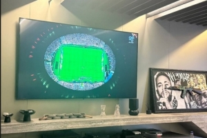 内马尔在电视机前观看比赛,为巴西队加油,他在社交媒体上晒出照片,配文:“马拉卡纳座无虚席,加油,巴西!”