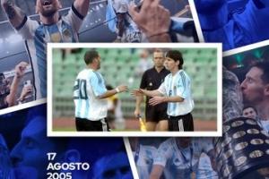 2005年8月17日,梅西在阿根廷对阵匈牙利的友谊赛中替补出场,完成个人在国家队的首秀,至今已过去20年时间。