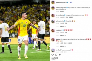 他也在赛后通过社媒晒出自己的庆祝照,并配文:“世界杯,我们又来了!我爱你,哥伦比亚!”