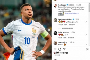 姆巴佩社媒晒出比赛照片,配文:“世预赛的良好开局,准备好周二在主场再接再厉。”