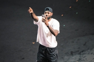 或许是惊讶于现场上万名球迷的激情澎湃,詹姆斯一出场亮相就掏出手机环拍一圈所有球迷。