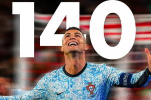 体育资讯09月07日讯 世预赛欧洲区小组赛F组第5轮,葡萄牙5-0客胜亚美尼亚,C罗梅开二度,国家队进球数来到140球,继续领跑国家队历史射手榜!