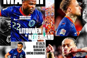 体育资讯9月7日讯 北京时间9月8日凌晨0:00,世预赛欧洲区小组赛G组,荷兰队客场对阵立陶宛。赛前,荷兰队官方发布比赛海报。