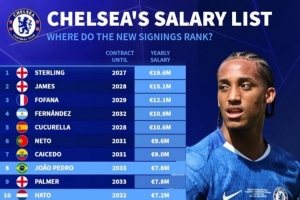 体育资讯9月7日讯 《转会市场》列出了切尔西队内合同及薪资情况,斯特林年薪队内最高。