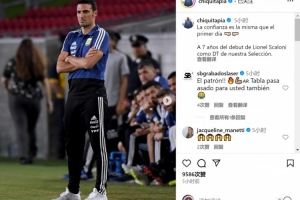 阿根廷足协主席塔皮亚社媒晒出斯卡洛尼的照片,配文:“信心依旧如初🤜🏻🤛🏻斯卡洛尼作为我们国家队主帅首次亮相七周年。”