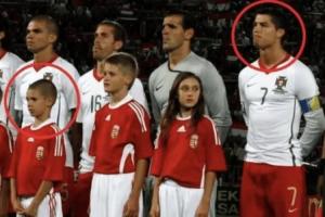 回到2009年,他曾与C罗同框,那是的他还是一名球童,站在劳尔-梅莱雷斯身前。