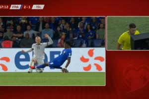 体育资讯09月10日讯 法国vs冰岛第68分钟,琼阿梅尼放铲踢中对方小腿!裁判看VAR后,直红!法国10人作战,此时比分法国2-1领先。