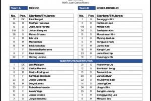 体育资讯9月10日讯 北京时间今天9点30分,墨西哥将在友谊赛中对阵韩国,两队首发名单出炉。
