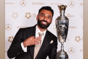 萨拉赫当选PFA年度最佳球员,前队友阿诺德社媒晒出萨拉赫与奖杯的合照,并配上皇冠的表情符号,配文:“历史级。”