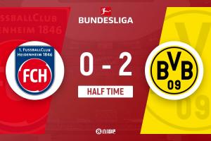 第50分钟,多特扩大比分!阿德耶米右路精彩内切过人后无私横传左路拜尔推射破门,海登海姆0-2多特。↓
