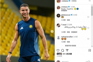 C罗社媒晒出训练照片,配文:“准备就绪,团结一致。”