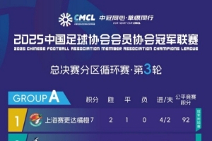 体育资讯9月15日讯 中冠总决赛分区循环赛第三轮战罢,上海赛更达橘橙以进球数和公平竞赛积分优势领跑A组,厦门壹零贰陆3战全胜领跑B组。