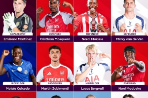 后卫:莫斯克拉(阿森纳)、穆基勒(桑德兰)、范德文(热刺)