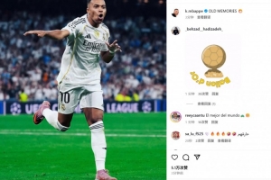 姆巴佩也在赛后晒出自己的庆祝照,并配文:“旧日的记忆。”