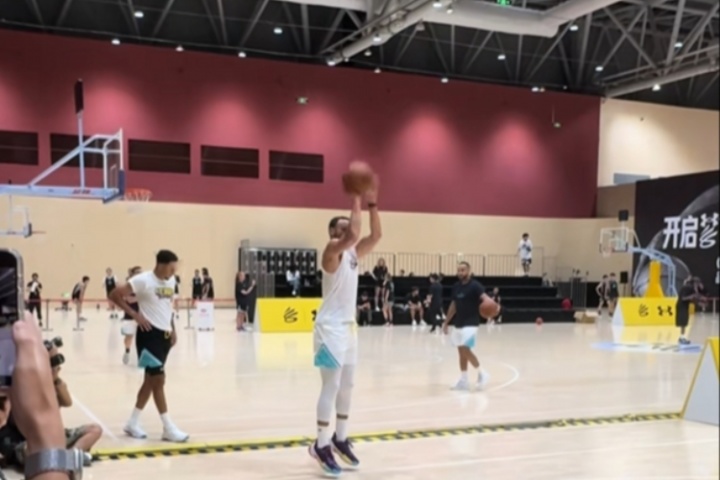 对库里来说洒洒水啦!库里中国行 底角三分简简单单26连中