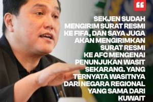 印尼足协主席托希尔表示,同是来自西亚的科威特裁判可能会影响比赛吹罚的公正性,在这一轮世预赛亚洲区比赛中,印尼是唯一一支非中东地区的球队,其他五支球队分别是沙特、伊拉克、卡塔尔、阿曼以及阿联酋。