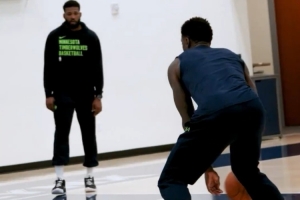 体育资讯9月20日讯 今天,森林狼在官推上晒出一段爱德华兹和兰德尔一起训练的视频。