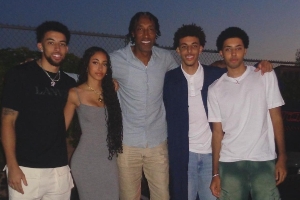 据美媒统计,皮蓬一共生了7位子女,图中的4个孩子均与拉尔萨所生,分别是小皮蓬(24岁,左一)、普雷斯顿(23岁,右一)、贾斯汀(20岁,右二)和索菲娅(16岁)。
