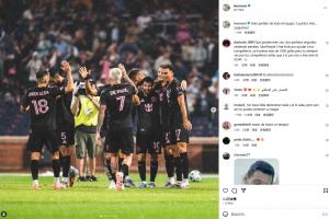 梅西赛后更新社媒写道:全队都表现出色,再添3分。我们继续!