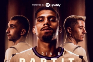赛前,巴萨官方社媒为此役制作海报:海报中阿劳霍C位,费兰-托雷斯、莱万在列。