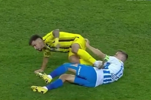 体育资讯9月28日讯 《太阳报》报道,罗马尼亚联赛惊现恶劣犯规,球员在被蹬踏后猛踹对手私处,被红牌罚下。