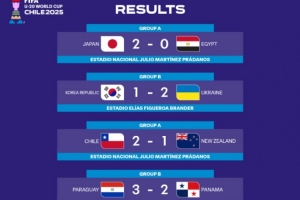 A组,日本U20队对阵埃及U20队,日本队依靠市原吏音、石井久继的进球2-0取胜收获开门红;东道主智利U20队对阵新西兰U20队,智利队劳塔罗-米兰、伊恩-加格斯分别进球,新西兰队内森-沃克进球,智利队2-1取胜。