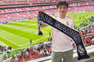 樊振东晒出现场观战的照片,写道:感谢 @LALIGA西甲联赛 的邀请,第一次随皇马征战客场,在大都会球场亲历德比的激烈碰撞与"the power of our fútbol"⚽
