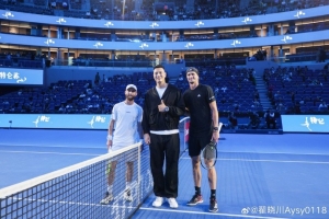 翟晓川晒出一组现场照并写道:“很荣幸为今天中网的比赛挑边👍 ”