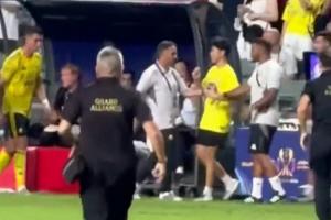 赛后有球迷冲场想合影被安保人员带走,据中国香港媒体报道,该球迷在社媒上表达了不满。