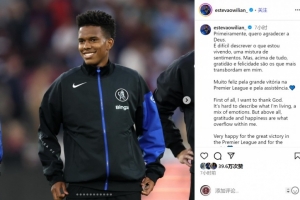 埃斯特旺此役为切尔西首发出战,送出助攻,并当选本场比赛最佳球员。赛后他在社交媒体上写道:“首先,我想感谢上帝。 很难描述我现在的感受,各种情绪交织在一起。但最重要的是,我内心充满了感恩和快乐。