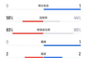 曼联射门、控球率等数据领先,但未能破门。阿森纳5射3正,一次得分机会即进球。