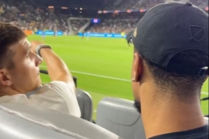 体育资讯10月6日讯 今天,快船球员博格丹和友人到现场观看了美职联比赛。