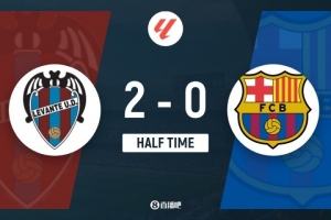 体育资讯8月24日讯 北京时间8月24日凌晨3:30,2025-2026赛季西甲联赛第2轮,莱万特坐镇瓦伦西亚城市球场迎战巴塞罗那。上半场伊万-罗梅罗破门,禁区内巴尔德手球送点,莫拉莱斯点射再下一城,巴萨暂0-2莱万特。