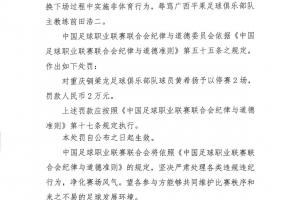体育资讯10月10日讯 中足联官方发布处罚,铜梁龙球员黄希扬实施非体育行为,辱骂广西主帅前田浩二,停赛2场罚款2万。