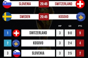 1.瑞士击败斯洛文尼亚。