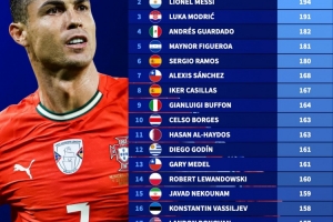 体育资讯10月11日讯 德转统计了本世纪国际比赛出场次数最多的20名球员,具体排名如下: