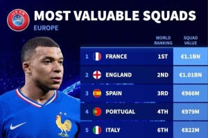 体育资讯10月12日讯 德国转会市场网近日更新欧洲国家队身价排名,法国队以11亿欧元总身价高居榜首,英格兰(10.1亿欧)与西班牙(9.66亿欧)分列二、三位↓