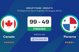 体育资讯8月24日讯 今天结束的一场男篮美洲杯小组赛,加拿大男篮99比49大胜巴拿马男篮50分。