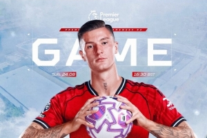 曼联新援前锋舍什科更新社媒动态,晒出个人比赛海报,预热对阵富勒姆的比赛。