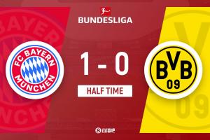 体育资讯10月19日讯 北京时间10月19日凌晨0时30分,2025-26赛季德甲第7轮国家德比在安联竞技场展开角逐,拜仁慕尼黑主场迎战多特蒙德。上半场凯恩头球破门+联赛7轮12球,基米希角球助攻,拜仁主场暂时1-0领先多特,多特半场零射门。