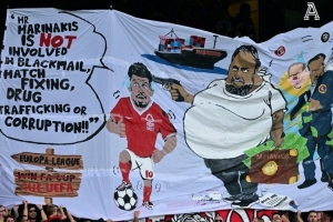 横幅上吉布斯-怀特说道:“马里纳基斯先生并未涉及敲诈、操纵比赛、贩毒或腐败!”马里纳基斯一直强烈否认与这些指控相关的任何不当行为。